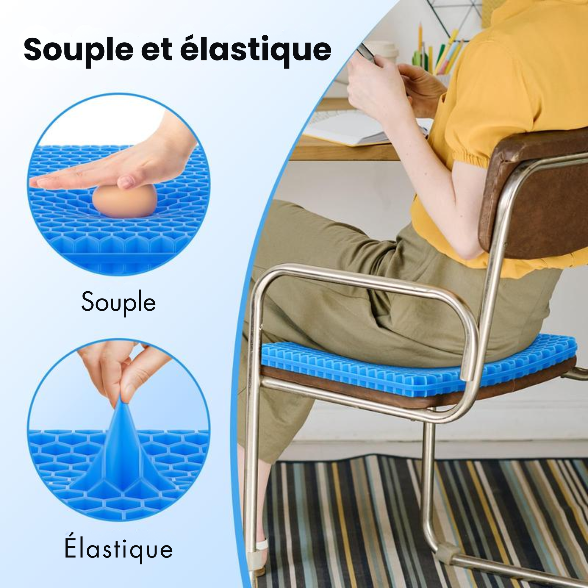 Le maillage en gel TPE fléchit cellule par cellule et éloigne la pression du coccyx et des hanches. Vous gardez une posture détendue sans points douloureux, au bureau comme en voiture, même lors de longues sessions assises.