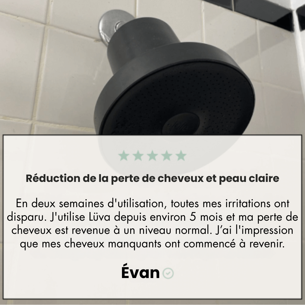 Fini les boutons après la douche. Lüva filtre les impuretés, le chlore et les toxines pour laisser votre peau saine, hydratée et apaisée. Résultat ? Moins d’imperfections, plus d’éclat.